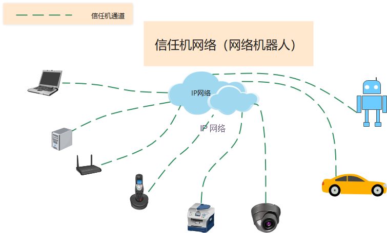 - 这样我们可以把不便于让人类窃听到的话都交给网络机器人去传递,把对通信对方身份的验证都交给不会受人类影响的网络机器人去判断。