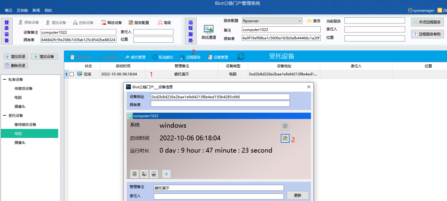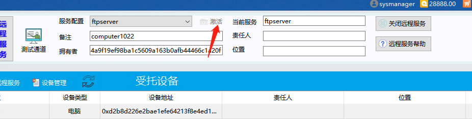 2)、可以双击设备,在对话框中点击远程服务,也可以直接操作按钮板上的远程服务